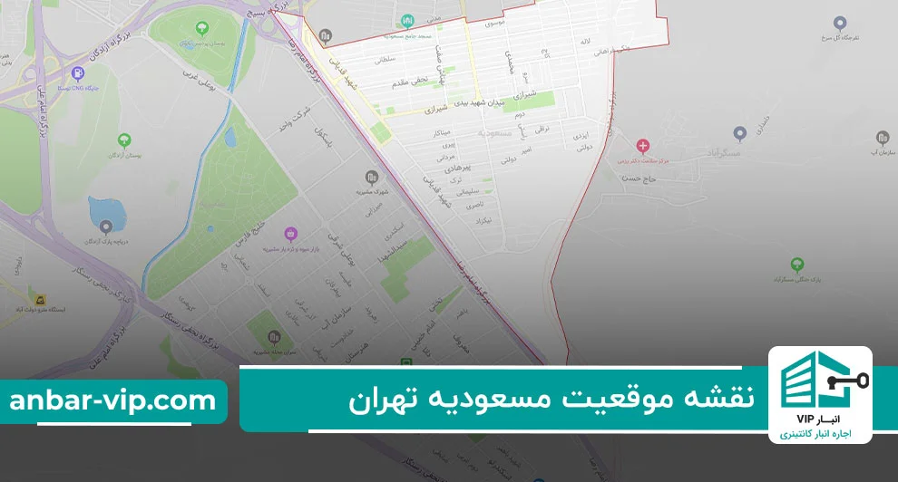 محله مسعودیه در منطقه 15 تهران از قدیمیترین و در عین حال روبهرشدترین نواحی جنوب شرقی پایتخت به شمار میرود. این محله از شمال به بلوار قائم و خیابان ابومسلم خراسانی، از شرق به خیابان محمد کاظم کلهر، از جنوب به بزرگراه امام رضا (ع) و از غرب به خیابان شهید قدیانی و بلوار خاتمالانبیاء محدود است. موقعیت محله مسعودیه تهران باعث شده دسترسی آسانی به بزرگراههای اصلی مانند خاوران و امام رضا داشته باشد و همین موضوع، آن را به نقطهای مناسب برای سکونت و فعالیتهای تجاری تبدیل کرده است.