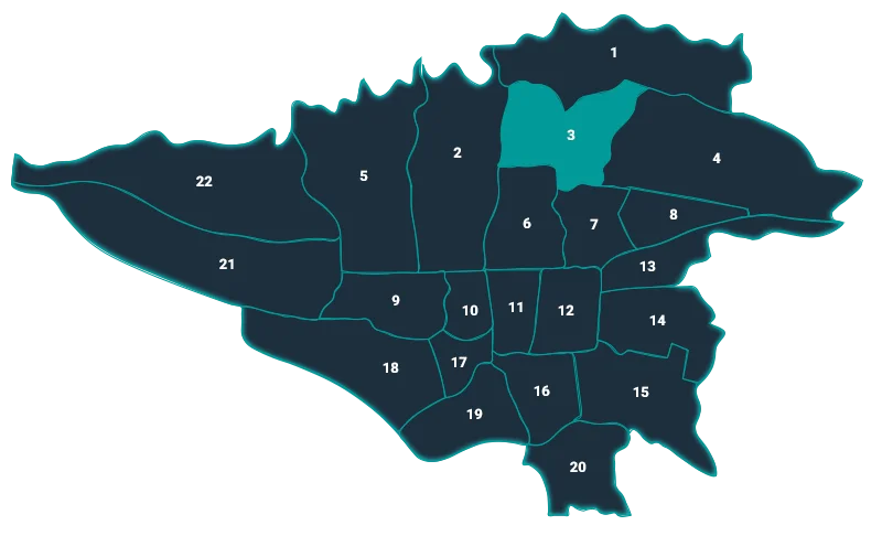 منطقه 3 تهران که در شمال شرقی پایتخت واقع شده است، از مناطق مهم و پرطرفدار برای خرید و سرمایهگذاری مسکن به شمار میرود و شامل 12 محله مختلف میباشد. این منطقه از نظر دسترسی، موقعیت بسیار مناسبی دارد و از جنوب به اتوبان همت و بزرگراه رسالت، از غرب به اتوبان چمران، از شرق به محله پاسداران و از شمال به بزرگراههای مدرس و صدر محدود میشود.
